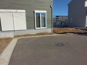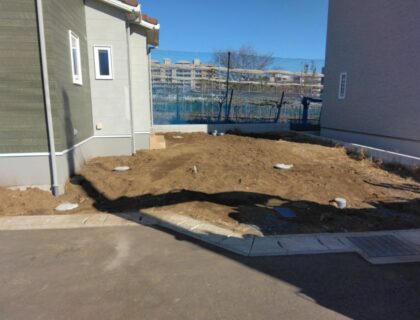 隣地との土留めは住宅側でやってくれていますが、道路との境界は土が盛ってあるだけでこぼれてきてしまいます。