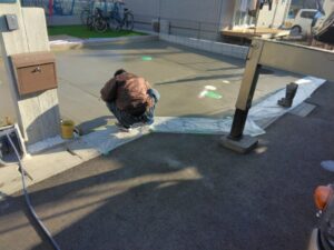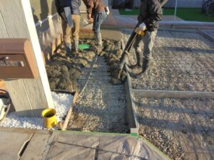 土の搬出、整地、砕石を敷いて転圧、伸縮目地をいれて、メッシュ敷…土間打ちの準備もたくさんやることがあります。