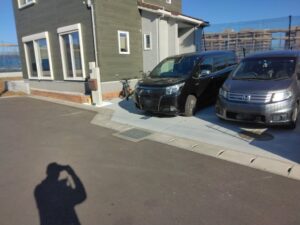 土間も乾き、車も停められるようになりました。機能門柱のポストも可愛いです♪
