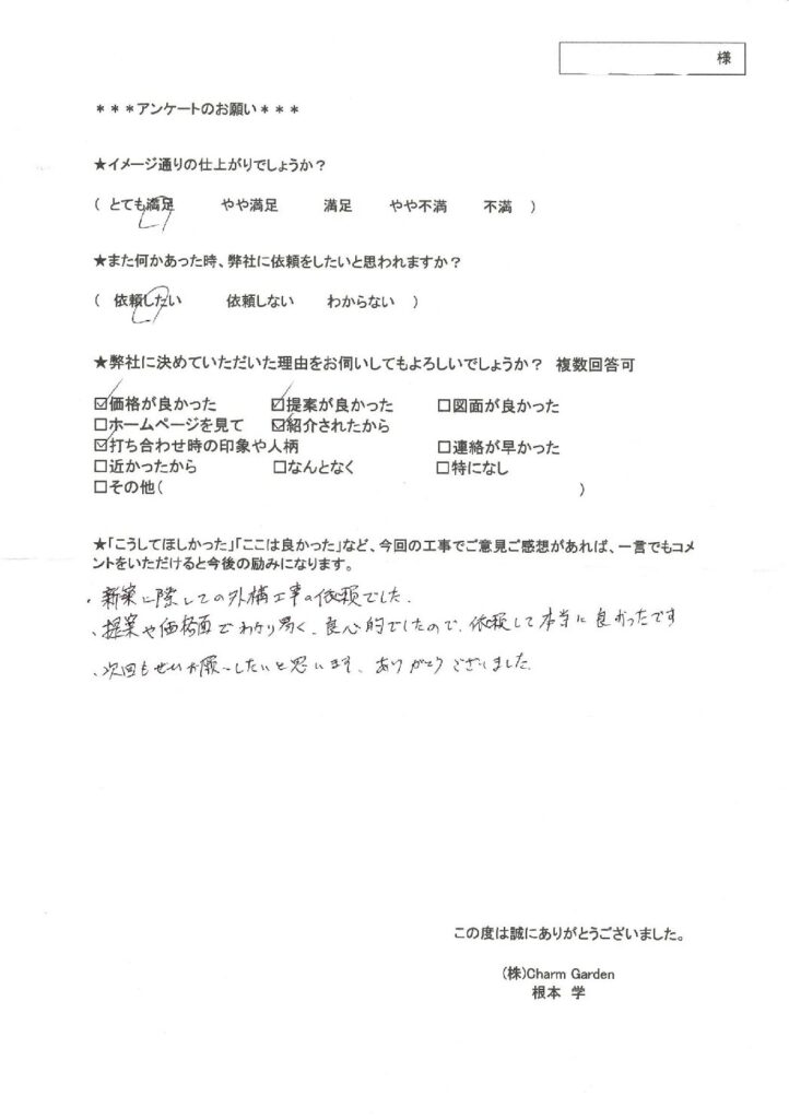 新築外構工事です。 以前お世話になった方からのご紹介になります。 レンガ調のブロックを積みおしゃれになりました。 写真撮り忘れましたが、お子様が野球をやっているので、お庭は人工芝を敷きました。
